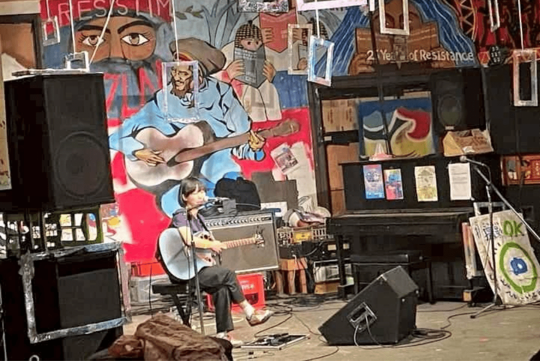 椎奈さんは、これまで月1〜2回、多いときで3回、ライブハウスや野外ライブで弾き語りを行ってきた。小学校の頃にはすでにギターを触りはじめて曲を作り、高校生や大学生になってからはライブやバンドをしてきた。いわば、生粋の音楽っ子だ。